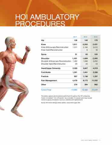 The tables capture all procedures performed throughout the HOI enterprise. Cases considered “non-orthopedic” are excluded. A surgical case may include several surgical procedures (such as: bilateral joint replacement).