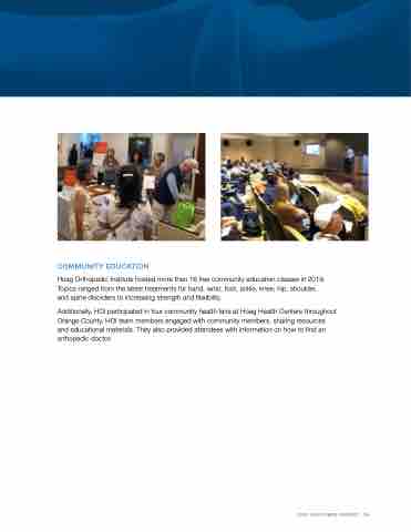 Hoag Orthopedic Institute hosted more than 16 free community education classes in 2019. Topics ranged from the latest treatments for hand, wrist, foot, ankle, knee, hip, shoulder, and spine disorders to increasing strength and flexibility.