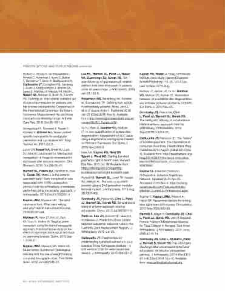 Gondusky JS, Pinkos KA, Choi L, Patel JJ, Barnett SL, Gorab RS. Simultaneous bilateral anterior approach total hip arthroplasty. Ortho. 2015 Jul;38(7)611-5.